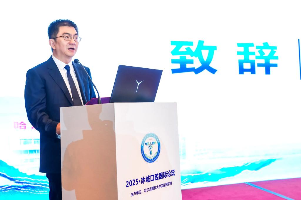 哈尔滨医科大学刘进副校长在致辞中表示希望通过本次论坛,搭建一个更加开放、包容的国际学术交流平台,促进全球口腔医学领域的创新与合作。