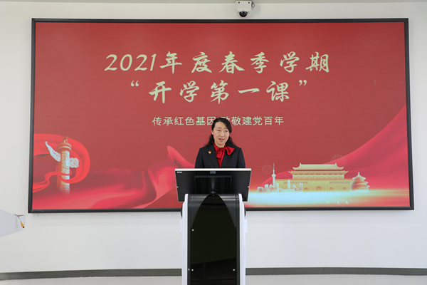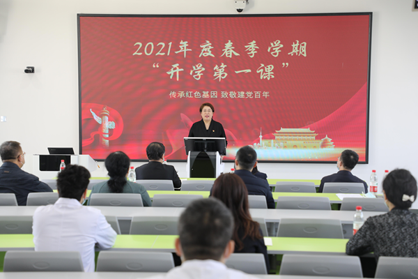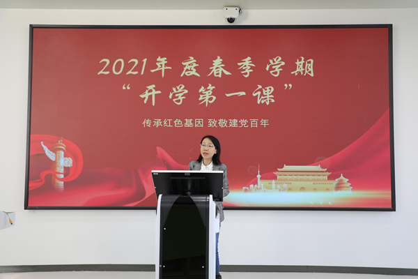 3月7日,按照省教育厅有关要求,我校组织开展了以“传承红色基因 致敬建党百年”为主题的开学第一课专题讲座,讲座分为思想政治课、防疫技能课、抗疫精神课和健康心理课四部分。学生处处长周艳娟主持讲座,全校师生线上线下同步收看。