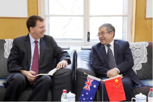 4月14日,澳大利亚驻沈阳总领馆总领事陈一白先生(Broughton Robertson)、领事白宇轩先生(Luke Coates)来我校调研哈尔滨医科大学与澳大利亚乐卓博大学联合培养卫生管理硕士研究生项目。校长张学、副校长孙殿军、国际交流处处长杨丹、高评中心主任杨立斌、卫生管理学院院长吴群红及国际交流处工作人员、中澳联合办学专业师资代表参加了座谈会。