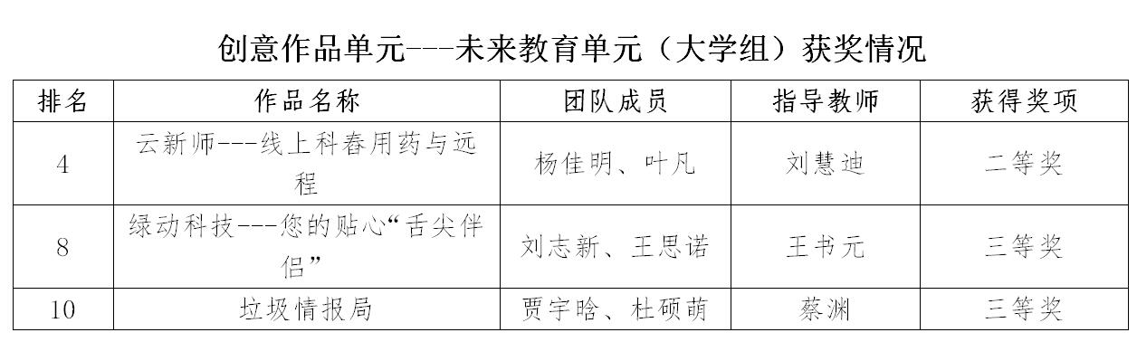 我校学生参加了生物环境和未来教育两个单元比赛,参赛选手在竞赛中表现突出,取得优异成绩,获生物环境单元一等奖2项,二等奖2项,三等奖3项,未来教育单元二等奖1项,三等奖2项。其中生物环境单元参赛作品“隔窗相望,带您凯旋”将代表“黑龙江-吉林”赛区参加6月份举行的全国决赛。