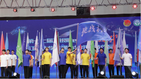 大会现场播放了本届挑战杯的宣传视频。哈尔滨师范大学和哈尔滨音乐学院的学生代表为现场观众表演了本届挑战杯大赛主题曲“青春一起挑”。33所参赛高校代表携会旗、校旗入场,第十七届“挑战杯”黑龙江省大学生课外学术科技作品竞赛决赛正式拉开序幕。“求真知,迎挑战,追梦路上谱华章”的铿锵口号响彻赛场。