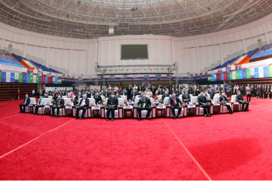 黑龙江省政府副省长孙东生,哈尔滨医科大学党委书记张斌,共青团黑龙江省委书记苑芳江,省委教育工委副书记、省教育厅党组成员、副厅长解宗军,黑龙江省科技厅二级巡视员殷雨臣,省科协党组成员、副主席臧晓敏,黑龙江省社会科学院副院长陈静,哈尔滨音乐学院副院长许双毅,共青团黑龙江省委副书记夏天,全省33所决赛参赛高校的领导、团委负责人、参赛师生代表齐聚哈尔滨医科大学,共迎“挑战杯”这一全省大学生科技创新活动的顶级赛事。开幕式由哈尔滨医科大学党委副书记袁重胜主持。