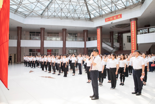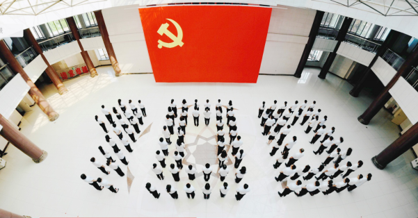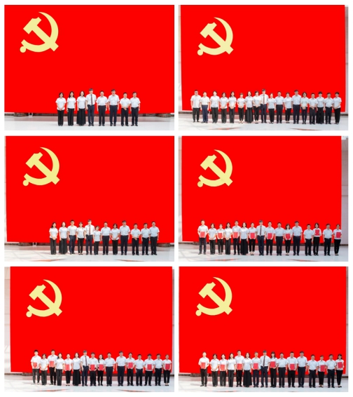 入党誓词是党员对党和人民做出的庄严承诺,在党委书记赵长宏的领誓下,百名新党员整齐的排列出数字“100”队形,面对鲜红党旗,右手握拳,一字一句许下铮铮誓言:“我志愿加入中国共产党……”