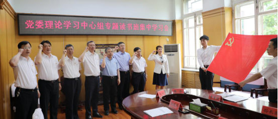 按照上级要求,学校党委理论学习中心组第一时间专题学习习近平总书记在庆祝中国共产党成立100周年大会上的重要讲话。党委书记张斌、校长张学分别领学了讲话原文,中心组成员交流了学习心得体会,并重温入党誓词。