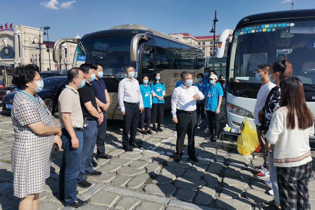 9月1日,学校迎来首批返校学生。为进一步督促工作,确保开学安全有序,学校党委书记张斌、校长张学实地踏查校园,为学生到校“打前站”,关注“三道关”。校领导分赴各火车站、附属医院,迎接首批到校学生,让他们一下车就感受到“到家”的温暖。