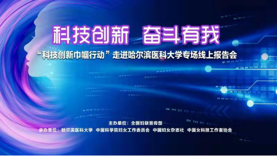 为激励全校师生坚持“四个面向”,弘扬科学家精神,在自主创新、科技自立自强中强化使命担当,勇攀科技高峰,以科技强国、科技强省、科技强校为目标贡献哈医大力量。近日,在学校党委的积极沟通下,由全国妇联宣传部主办,哈尔滨医科大学、中国科学院妇女工作委员会、中国妇女杂志社、中国女科技工作者协会等4家单位联合承办的“科技创新 奋斗有我‘科技创新巾帼行动'专场线上报告会”走进我校,全校师生通过多种形式观看了报告会。