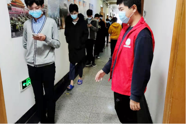 这一天,医大学子彰显着青年的勇气与担当,迅速配合,以绝对的行动力响应着学校每一项防控管理。