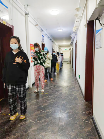 这次核酸检测,医院管理处组织医护人员们纷纷“进驻”学生公寓,让同学们感受到身与心的双重温暖。