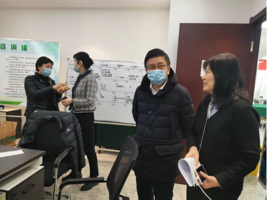 12月8日,孙殿军主任看望流调队员并在流调现场与省疾控中心、香坊区卫健局、香坊区疾控中心领导交流疫情防控工作