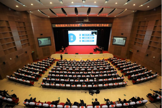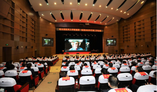 2月19日,为凝心聚力推动医院高质量发展,哈尔滨医科大学附属第一医院召开2022年行政工作会议。哈医大一院院长于凯江主持会议,院领导班子全体成员,各学科主任、病房主任、总护士长、护士长、职能科室工作人员等出席线下会议。各病房副主任、医疗组长、副护士长、医疗秘书等1000余人通过线上参加会议。中国工程院院士、哈尔滨医科大学校长张学通过线上参加会议并向大会致辞。