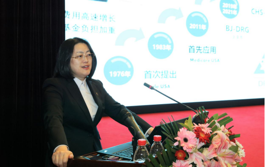 副院级领导施梅以《落实DRG改革 推进医院高质量发展》为题做工作报告