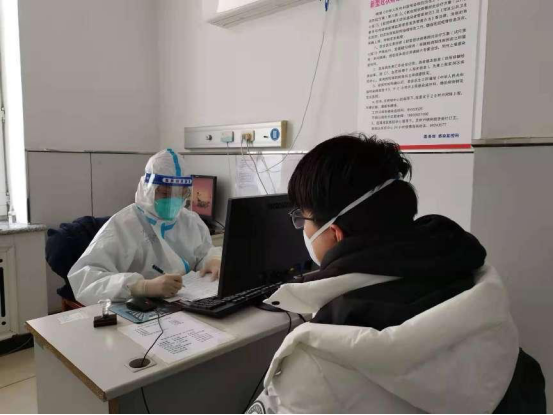 防疫“哨点”发热门诊医护人员详细登记发热患者14 天内去过的中高风险地区,并为患者进行新冠排查。发热患者待新冠排查后方能离开发热门诊区域。