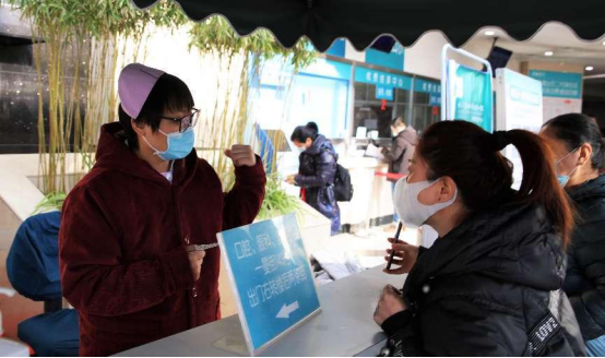 导诊台前,志愿者耐心细致为患者指导就医流程,用热情的服务温暖市民。