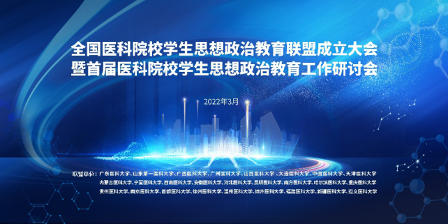 首批全国医科院校学生思想政治教育联盟由首都医科大学、南京医科大学、天津医科大学包括我校在内的共26所医科院校组成,全国医科院校思想政治教育联盟的成立,为医学生思想政治教育事业立德树人、守正创新,为构建大医学思想政治教育体系开启了新篇章。