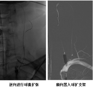 经过完善的术前准备,全麻状态下手术开始。李永利带领团队先用微导丝引领微导管进入颈升动脉,绕了几个圈后进入椎动脉内,然后在椎动脉内逆血流方向往回走,找到并通过闭塞段。使用球囊对闭塞段进行扩张,扩张后隐约可见血管再通的影像,再从闭塞近端正常血管内输送一枚支架将闭塞段血管完全支撑起来。手术非常顺利,术后检查显示,椎动脉供血明显充沛,患者次日头晕等症状明显好转。