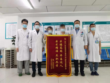 患者术后恢复良好,第三天即可下床活动,术后一周便顺利出院。出院前患者及家属向麻勇及团队医生送上一面锦旗表示感谢:“感谢麻勇主任及整个科室团队的付出,缓解了我的病痛,能让我平安回家和家人重新团聚,十分感谢!”
