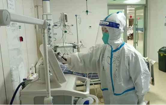 “护理团队穿着厚厚的防护服,克服视野不好、体力透支的困难,为患者翻身、防压疮护理,我们想尽各种方法调整患者的状态。大家都想着:再努力一下,等待大娘的病情出现转机。”黄睿满怀希望地说。