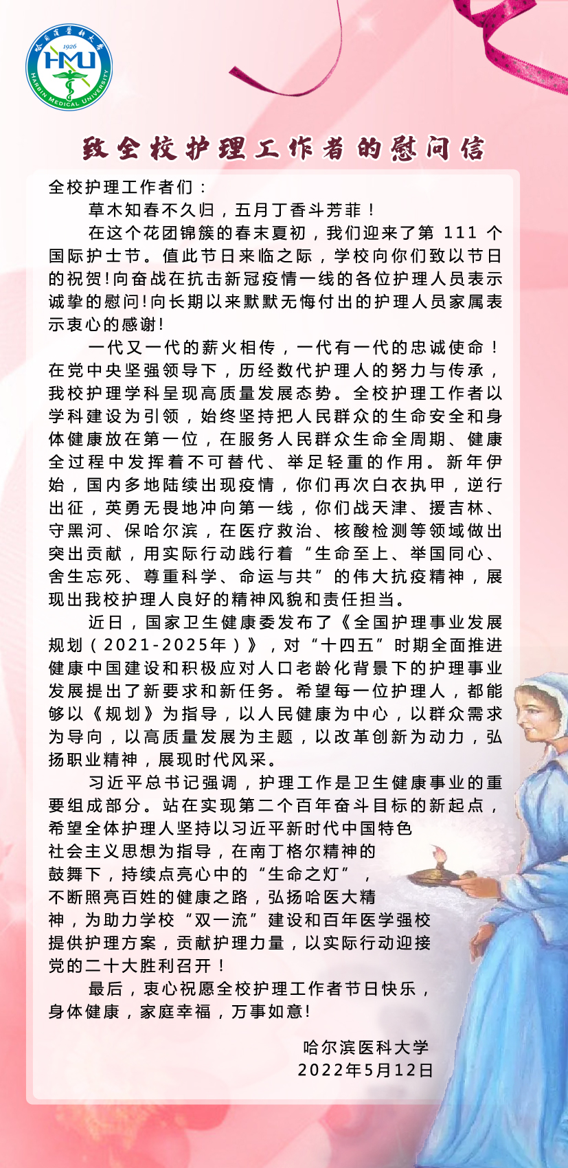 致全校护理工作者的慰问信