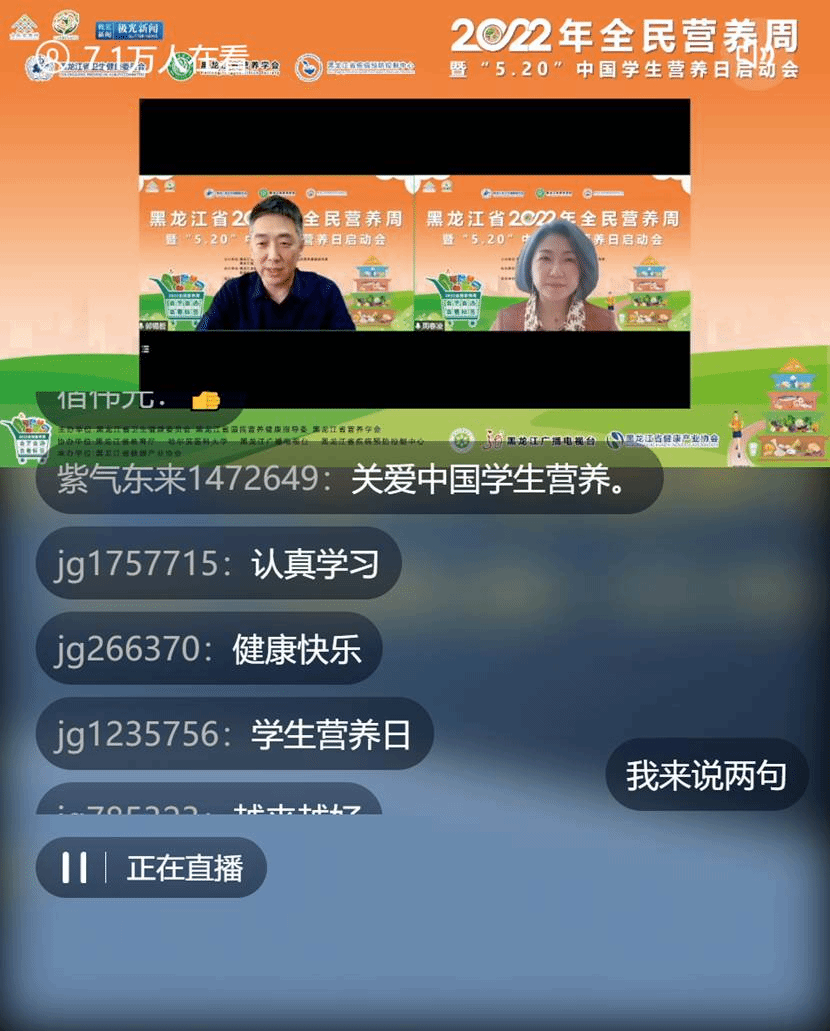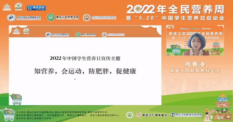 5月15日上午9时20分,黑龙江省2022年全民营养周暨“5·20”中国学生营养日启动会在极光新闻“健康龙江直播室”线上举行。
