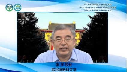 中国工程院院士、哈尔滨医科大学校长张学在线上为开幕式致辞
