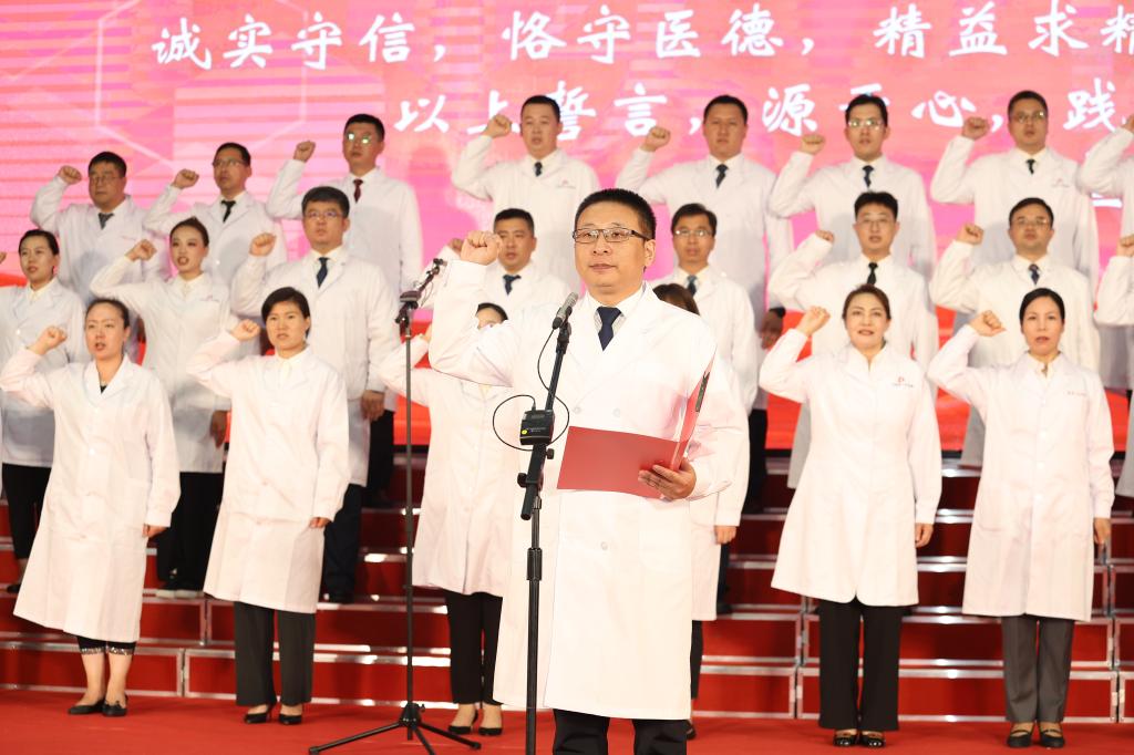 在附属一院杨光教授的带领下,来自各附属医院的30名医师代表上台,与参会的医师们共同宣誓,再度感受中国医师誓言所承载意念的厚重与崇高,庆祝大会上半部分在中国医师誓词宣誓活动中圆满结束。