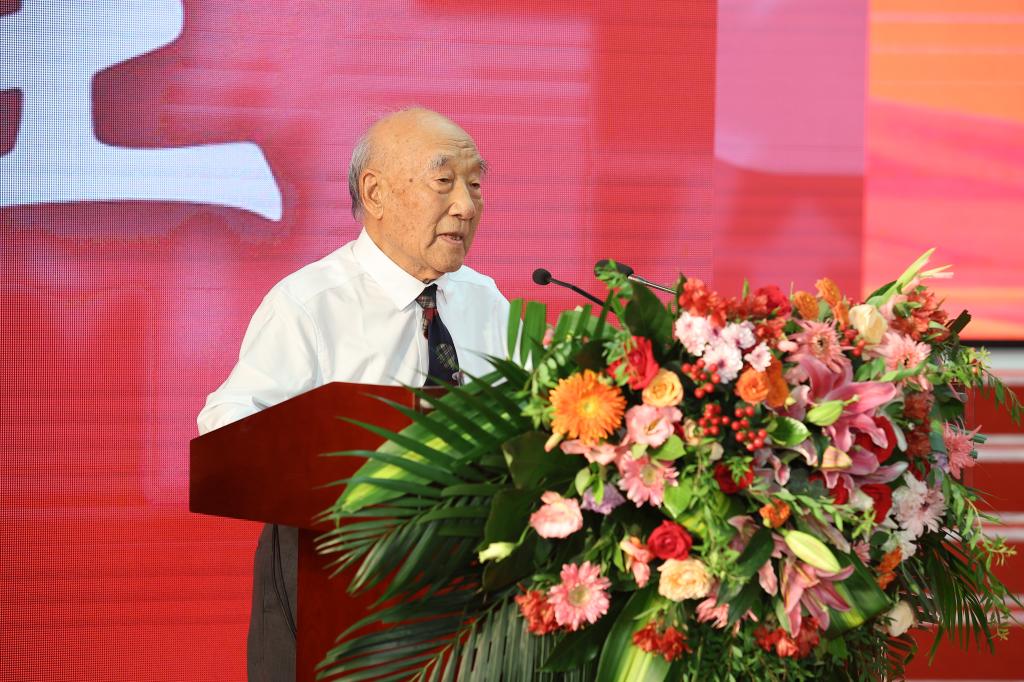 颁奖结束后,来自附属二院97岁高龄、从医74年的王志成教授上台发言,分享多年来临床从业的经验和感悟,并对年轻医师提出三点希望,一是要登高望远,确定自己一生的奋斗目标;二是要坚持不懈,矢志不渝,哪管是“衣带渐宽人憔悴”;第三是要融会贯通,有所发现、有所发明,从自然王国走向自由王国。