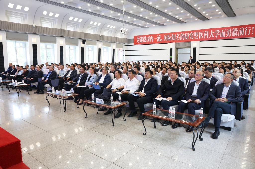 学校党委书记张学出席会议并讲话,就高质量做好学校人才工作提出三点意见:一是要树牢“人才是第一资源”理念,深刻把握人才工作对学校发展的战略意义,坚守党管人才政治责任,将人才作为延续百年荣光的核心支点。清醒认识人才竞争严峻性,以超常规举措引才、创新思维育才,在新时代医学教育格局中赢得主动。二是要破除思想藩篱,摒弃“区域决定论”,抢抓东北振兴机遇打造人才高地。破除“消极等靠论”,主动对接资源把握国际人才流动窗口。破除“推诿旁观论”,全校同心形成事业发展“向心力”。破除“短视功利论”,敞开胸怀广纳贤才与用心浇灌培育本土英才并重。三是要搭建人才发展“三维系统”,拆除评价、激励、学科“三重壁垒”,营造创新、服务、情感“三种生态”,压实校、院、团队“三级责任”,构建新时代医学人才发展成长新格局。他特别强调,争创国家“双一流”建设大学,是一场关乎未来的学科突围与人才竞跑,全校上下要勠力同心,为建校百年献上人才厚礼,在新征程上谱写辉煌篇章。