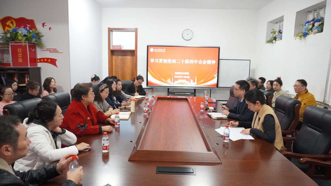 为深入学习贯彻党的二十届四中全会精神,推动党的创新理论学习深入人心,11月4日下午,马克思主义学院在一楼会议室开展“学习贯彻党的二十届四中全会精神”专题党课。此次党课由学院党委书记朱研主讲,学院全体教师参加学习。会议由院长李中华主持。