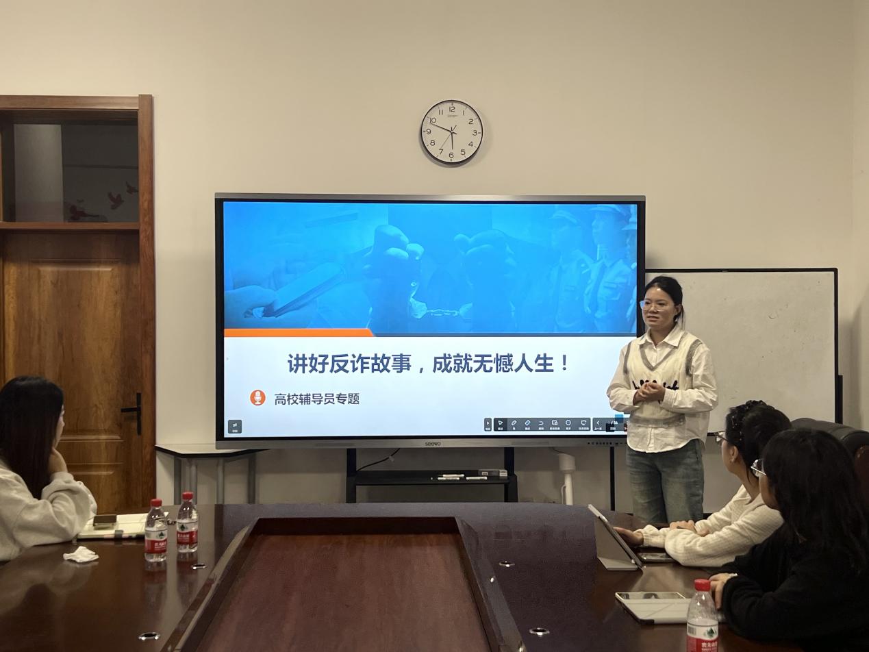 为切实增强学生的安全防范意识,提升识别与应对电信诈骗的能力,筑牢校园安全防线,11月13日下午,马克思主义学院在一楼会议室召开了以“讲好反诈故事,成就无憾人生”为主题的专题教育会。会议由辅导员张春娜主持,全体研究生参加。