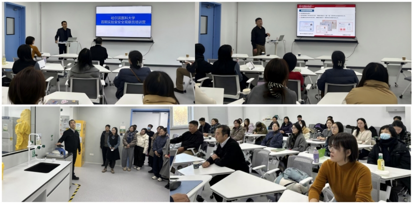 师生参观了东北林业大学EHS(环境、健康与安全)实验室教育实践体验中心,近距离接触实验室安全设施,深入了解各类设施的操作原理和潜在风险隐患。专题培训由东北林业大学、哈尔滨工业大学实验室安全领域专家,围绕实验室安全检查要点、危险源管控、应急处置流程、安全管理规范等核心主题开展讲解,结合高校实验室安全先进经验与典型案例,为观察员们开展隐患排查工作提供了专业指导。培训结束后,实验室服务中心为每位观察员颁发了工作证,观察员将回到各自的工作岗位,以专业、严谨的态度开展实验室安全观察工作。实验室服务中心也将持续关注观察员们的工作情况,定期汇总安全隐患信息,组织交流分享活动,不断提升观察员队伍的整体水平,共同筑牢校园实验室安全防线。