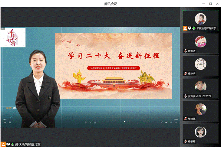 为全面深入学习贯彻党的二十大精神,引导广大学生党员和团员把思想和行动统一到党的二十大精神上来,12月12日晚7时,马克思主义学院学生党支部联合学院团支部共同开展学习贯彻党的二十大精神专题组织生活会,全体学生党员和团员参会,会议由学院团委书记、学生党支部组织委员邵铭浩主持。