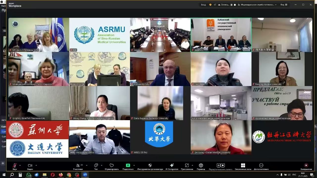 会上,中俄双方共16所院校代表,莫斯科国立谢切诺夫第一医科大学心理与社会工作学院教学与课程事务副院长纳塔利娅·阿列克谢耶夫娜、库班国立医科大学中等职业教育学院院长埃琳娜·阿列克谢耶夫娜、伏尔加格勒国立医科大学技术学院院长叶连娜·尼古拉耶夫娜、远东国立医科大学科学与国际事务副校长娜塔莉亚·弗拉基米罗夫娜、乌里扬诺夫斯克国立大学医学学院教学部主任加林娜·维克托罗夫娜、阿尔扎马斯医学学院院长纳塔利娅·亚历山德罗夫娜、布图尔利诺夫卡医学学院院长柳德米拉·阿列克谢耶夫娜、萨拉托夫国立医科大学医学学院院长拉里萨·米哈伊洛夫娜等8所俄方联盟成员院校特邀专家代表在会上做报告。