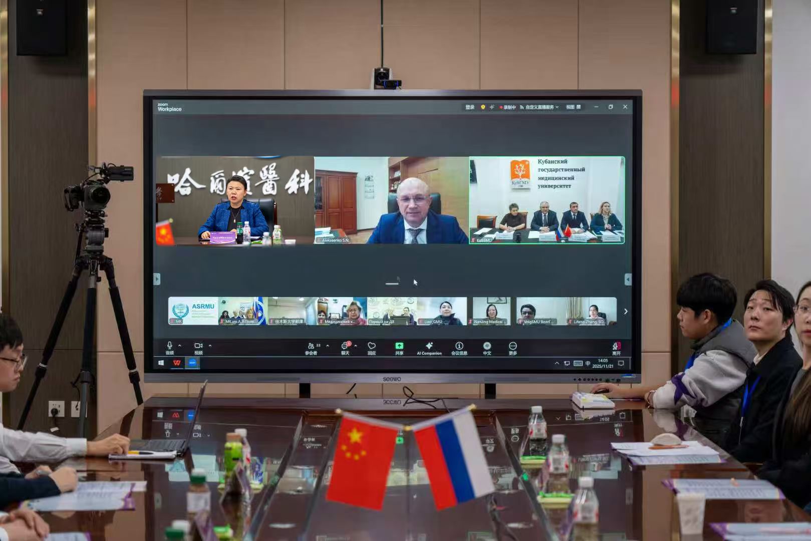 为进一步落实中俄人文合作委员会第二十五次会议精神,促进联盟院校在护理教育领域的交流与合作,搭建中俄医学院校沟通互鉴平台。在《中俄总理第三十次定期会晤联合公报》框架下,11月21日由中俄医科大学联盟主办,哈尔滨医科大学、库班国立医科大学联合承办的首届“中俄医科大学联盟护理院校合作会议”成功召开。会议采用“线上+线下”的方式举行,19所俄方护理院校,26所中方护理院校参加了此次会议,线下中方主会场设在哈尔滨医科大学。大会由库班国立医科大学副校长安德烈·阿纳托利耶维奇和哈医大护理学院院长范宇莹共同主持。
