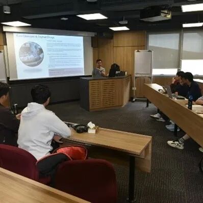 在南洋理工大学博士在读的金老师详细介绍了新加坡留学的注意事项,以及医疗政策及临床医师培养模式。还分享了自己参与的合成化学方向的科研进展并带领同学进行化学实验室参观。