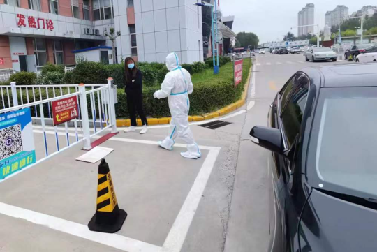 为保证运送有发热症状的学生到医院及时就诊,办公室车队刘弘瑀、王世宇、李庚雨24小时轮流值班,只能在空闲时间吃口饭眯一觉,电话响起就迅速接上发热同学出发……