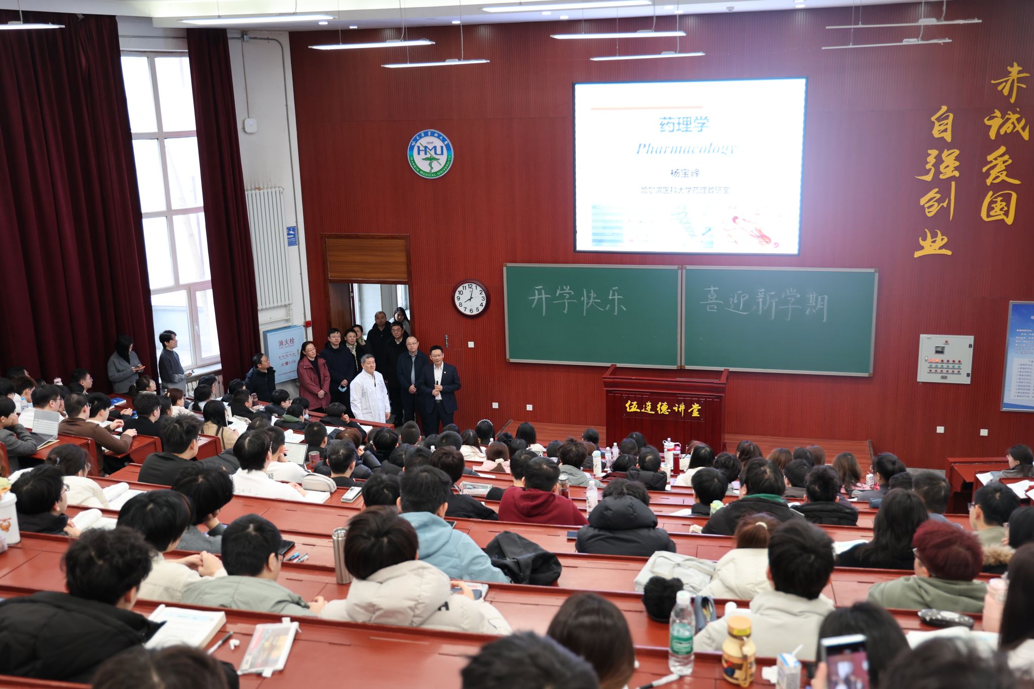 季勇校长一行来到杨宝峰院士的《药理学》课堂。他简要介绍了学校在新建校区建设、校庆筹备等方面的积极进展,并鼓励同学们珍惜与杨宝峰院士等名师面对面学习的宝贵机会,在学术熏陶中不断追求卓越。杨宝峰院士结合自身科研与教学经历,讲述学校对人才培养的高度重视,强调名师引领对学生成长的重要意义,并对青年学子寄予殷切期望。