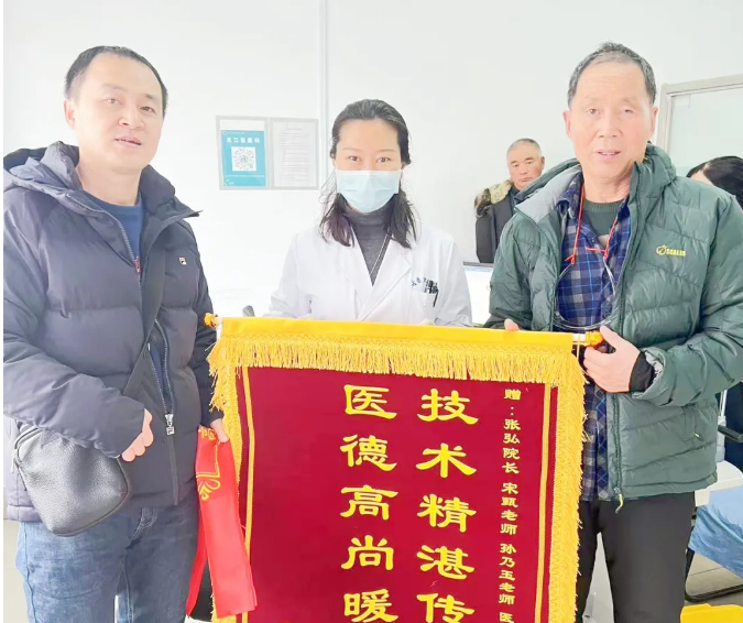 12月9日,正值张弘教授出诊日,患者及其家属满怀感激之情,特意定制了一面锦旗,上面写着“医术精湛传四方,医德高尚暖人心”,并在锦旗上附上了患者的名字和日期,以此表达对张弘教授及哈医大一院眼科医院全体医护人员的深深敬意和感激之情。