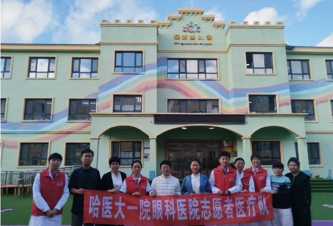 为进一步贯彻落实国家关于儿童青少年近视防控工作的部署,推动医教协同机制落地见效,2025年9月12日,由哈尔滨医科大学眼视光学院院长、哈医大一院副院长、哈医大一院眼科医院院长张弘教授带队,哈尔滨医科大学眼视光学院副院长、哈医大一院眼科医院视光中心主任李雪教授等一行11名医护人员前往大兴安岭地区,参加黑龙江省第11个全国近视防控宣传教育月启动仪式,并通过线上线下相结合的形式,为各县(市、区)教育局分管领导、全区各中小学(幼儿园)主管副校(园)长、校医(保健教师)及班主任309人开展了近视防控专题讲座、培训和线下答疑。在一天紧凑的行程中,哈医大一院眼科医院专家团队同时深入加区二小和曙光幼儿园,为326名学龄前和学龄儿童进行了视力筛查。