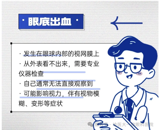 重要提示:眼底出血需要通过眼部专业检查才能确诊,如果您出现视力下降伴有上述症状,请立即就医!