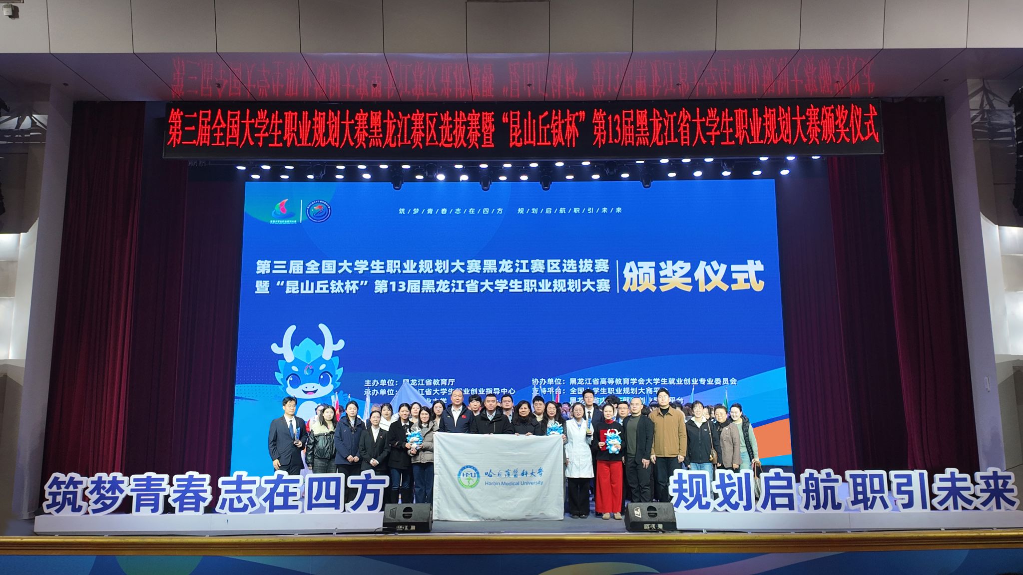 3月9日,第三届全国大学生职业规划大赛黑龙江赛区选拔赛暨“昆山丘钛杯”第13届黑龙江省大学生职业规划大赛圆满落幕。我校学子凭借清晰精准的职业规划、扎实过硬的专业素养、从容自信的赛场表现,斩获金奖4项、银奖4项、铜奖5项,8名教师荣获“优秀指导教师奖”。晋级省赛决赛的13名选手全员获奖、满载而归,续写我校赛事佳绩!