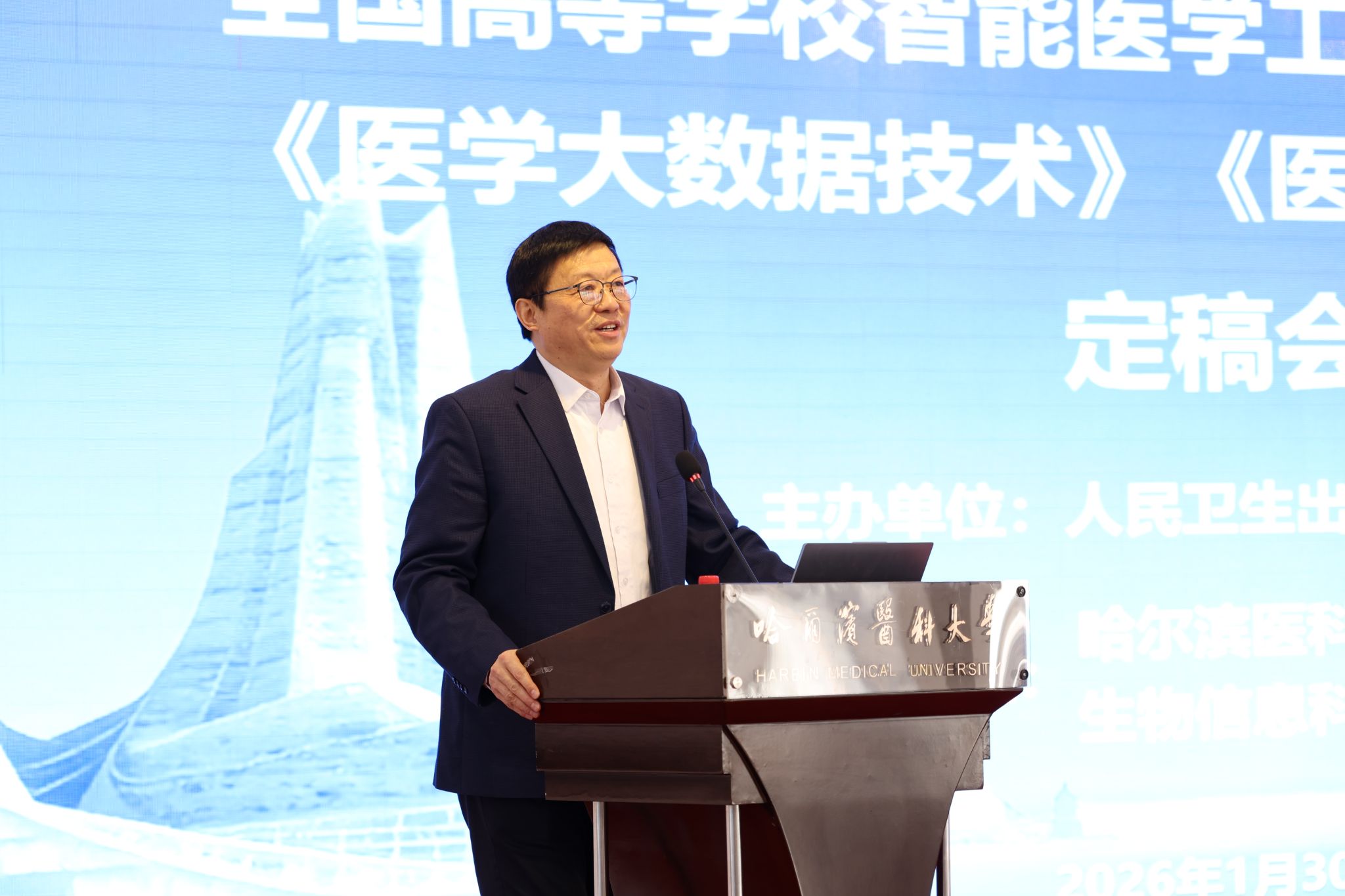 1月30日,由人民卫生出版社主办、哈尔滨医科大学生物信息科学与技术学院承办的全国高等学校智能医学工程第一轮规划教材《医学大数据技术》《医学自然语言处理》定稿会在哈尔滨医科大学顺利召开。来自北京大学、同济大学、中国医科大学、重庆医科大学、天津医科大学等全国多所知名院校及医院的40余位教材编委齐聚“冰城”,为两部教材的高质量出版凝心聚力。中国科学院院士、重庆医科大学校长张泽民,哈尔滨医科大学校长季勇,人民卫生出版社编辑张燕、师静出席会议。