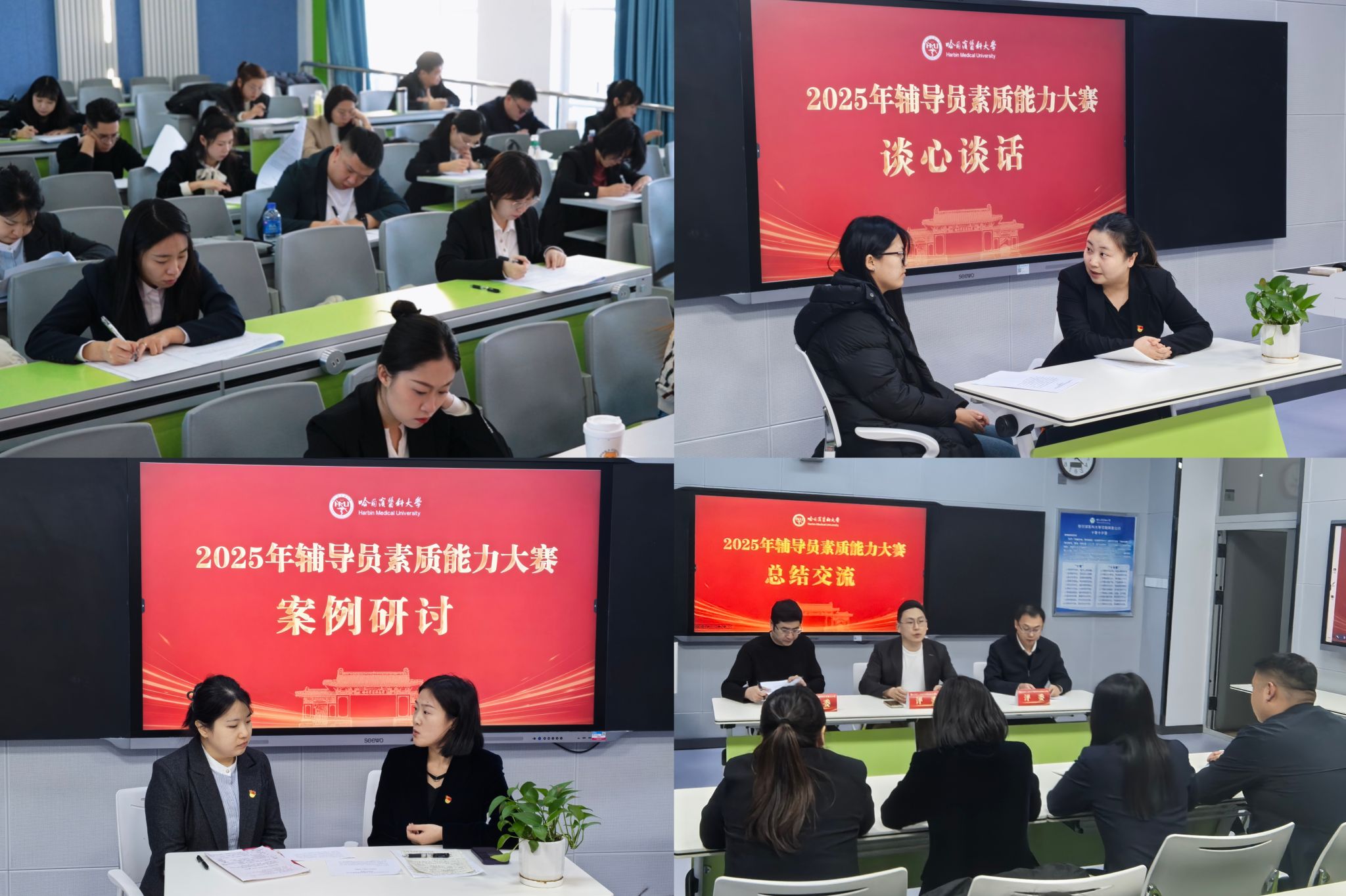 1月12日,在主楼三楼演讲厅开展决赛对决,10名晋级辅导员围绕“谈心谈话”环节进行最终角逐。邀请哈尔滨工程大学、黑龙江大学、哈尔滨师范大学、黑龙江中医药大学和哈尔滨学院行业领导专家担任评委。