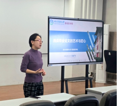 为进一步提升学院研究生学术写作能力,强化其论文规范意识,哈尔滨医科大学基础医学院研究生科于2026年1月13日14:00,在学院三楼报告厅举办《浅谈毕业论文的艺术与匠心》专题讲座,本次讲座由基础医学院副院长孔庆飞主讲。