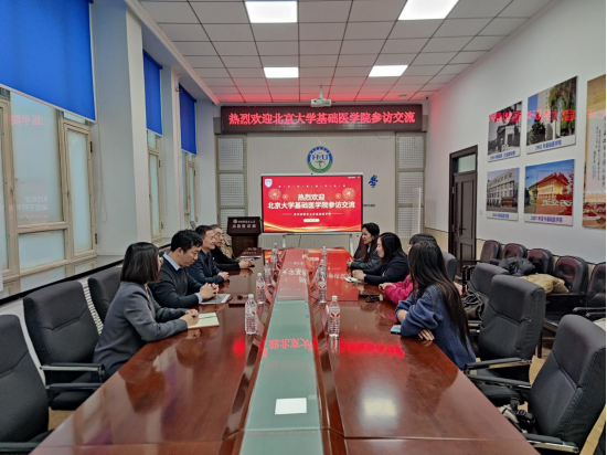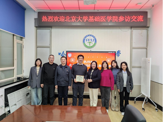 为深化医学教育改革,共享优质育人经验,近日,北京大学基础医学院代表团赴哈尔滨医科大学基础医学院开展专项参访交流活动。哈尔滨医科大学(以下简称“哈医大”)基础医学院伍连德书院院长兼基础医学院党委副书记刘振洪、学生年级党总支书记柳博及学生年级主任代表蔡渊、刘爽,与北京大学(以下简称 “北大”)基础医学院党委副书记郑凌冰、学生办公室主任李晗等一行人出席此次交流活动。