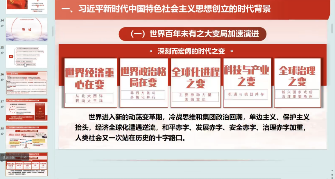 为深入学习贯彻党的二十届三中全会精神,坚持思政课建设与党的创新理论武装同步推进,进一步学好用好由中宣部指导、教育部组织编写的《“习近平新时代中国特色社会主义思想概论”参考讲义》(试用版)(以下简称“参考讲义”),守正创新推动高校思政课内涵式发展。3月2日,马克思主义学院“习近平新时代中国特色社会主义思想概论”教研室召开线上集体备课会。
