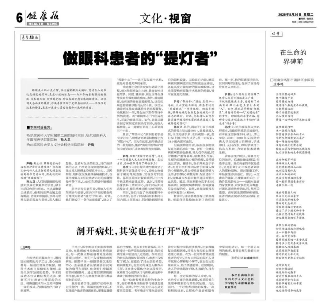 尹梅:孙主任,眼科患者的诊治和照护有什么特殊性?您和团队如何将人文关怀的星火精准投映到每位患者心间,照亮这段特殊的“黑暗旅程”?