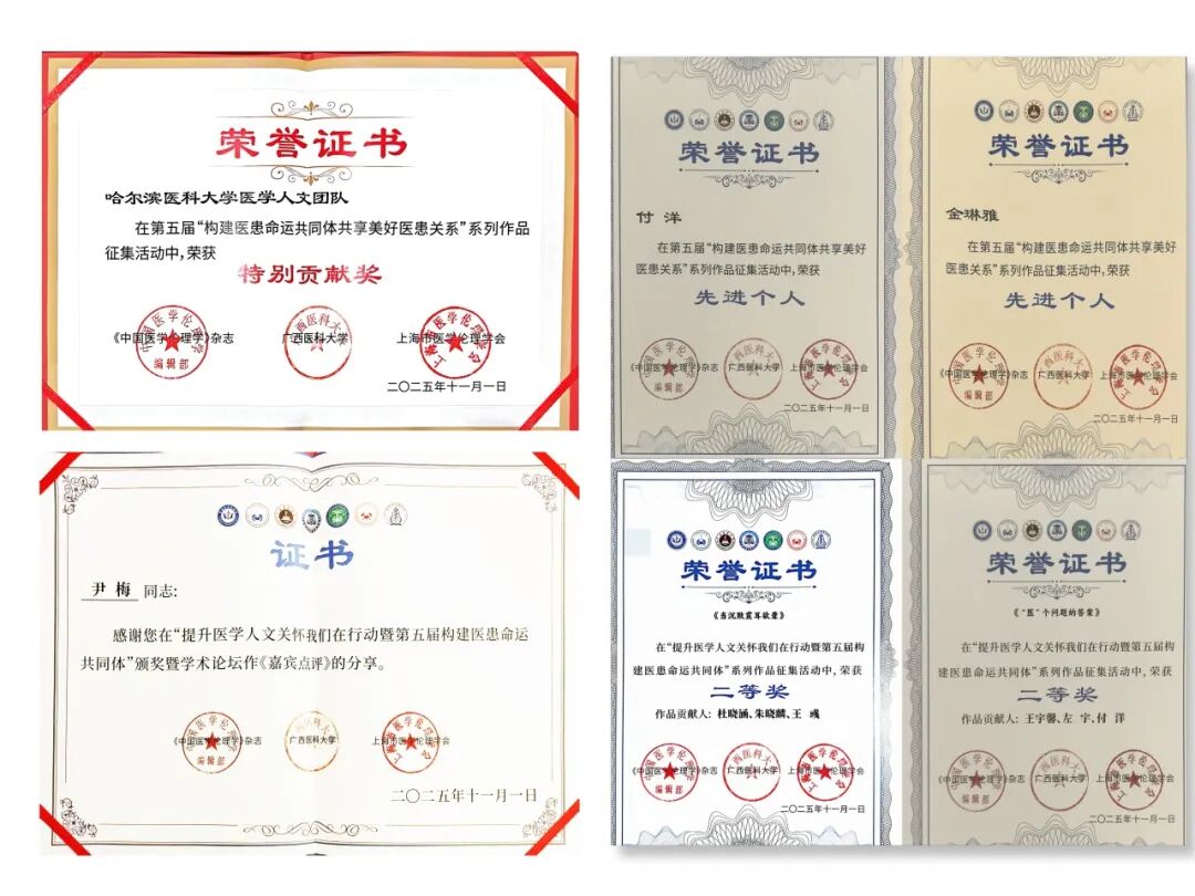 哈尔滨医科大学医学人文团队长期深耕医学人文教育与实践,在医学伦理学、叙事医学与医患沟通等领域持续探索、成果显著。此次在大会中的专业展现与所获荣誉,不仅体现了团队在学术领域的重要作用,也为全国医学人文事业发展与医患和谐生态构建贡献了重要力量。