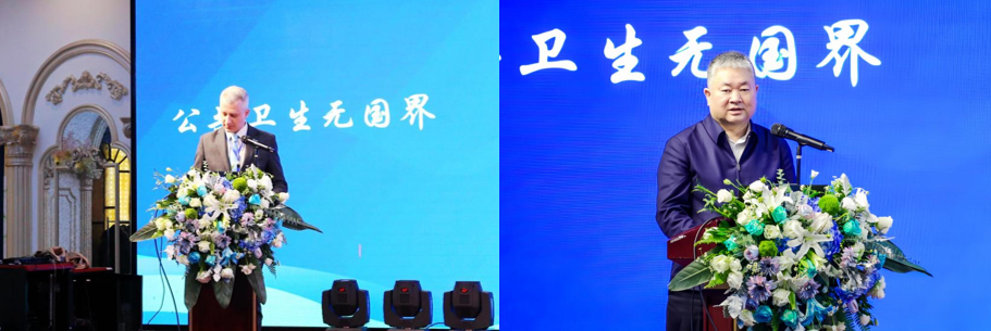 圣彼得堡西北国立医科大学预防医学与保健系副教授叶夫根尼·拜马科夫与黑龙江省卫生健康委副主任、省疾控局局长方庆伟发表致辞。