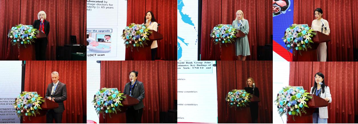 主论坛环节,由圣彼得堡西北国立医科大学公共卫生与卫生保健系副教授埃琳娜· 阿布穆斯利莫娃与哈尔滨医科大学公共卫生学院副院长田懋一分别就俄罗斯和中国公共卫生的现状、挑战和机遇进行了简要介绍,阐述了两国在公共卫生领域的共性及个性问题与特色实践。