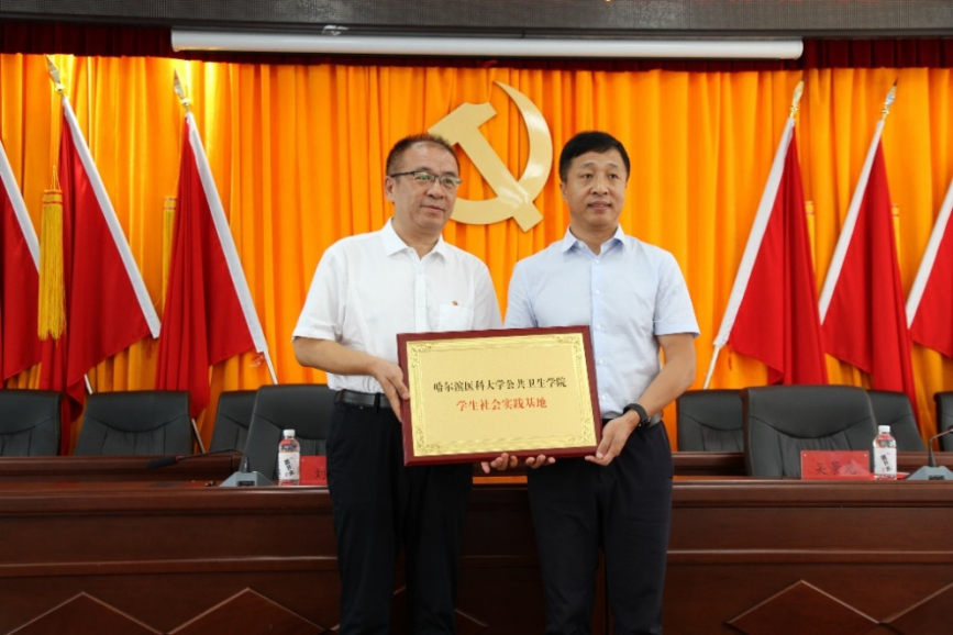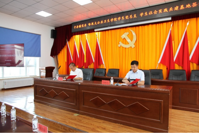 为深入贯彻落实习近平总书记关于青年工作的重要思想,倡导医学院校学生投身乡村振兴发展、健康中国战略,并构建共青团实践育人新模式,8月23日,在学院党委的支持指导下,哈尔滨医科大学公共卫生学院16名学子组成的社会实践团队,共赴哈尔滨市平房区平房镇开展以健康科普宣讲、乡村基层调研、民情体察和高新技术企业参观学习等形式的暑期“三下乡”社会实践活动,同时举行哈尔滨平房区平房镇党委和哈尔滨医科大学公共卫生学院学生社会实践共建基地签约仪式,参加仪式的主要领导有公共卫生学院党委书记刘振华、平房区平房镇党委书记吴景光、公卫学院党委副书记曲乃强、平房区委宣传部副部长徐晓龙、公共卫生学院学生党总支副处级辅导员王国华。此次签约不仅为公共卫生学院的学生们提供了一个宝贵的实践调研平台,也进一步加强了医学院校与地方政府之间的联系与合作,为培养公共卫生应用型人才和提升公共卫生服务质量打下坚实基础。